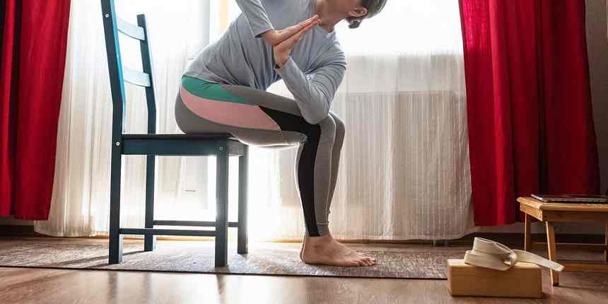 woman sitting in chair stretching yoga pose Credit: Koldunov / Getty Images